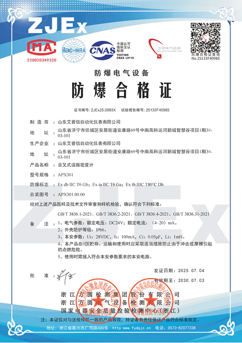 選用產品APX301音叉密度計